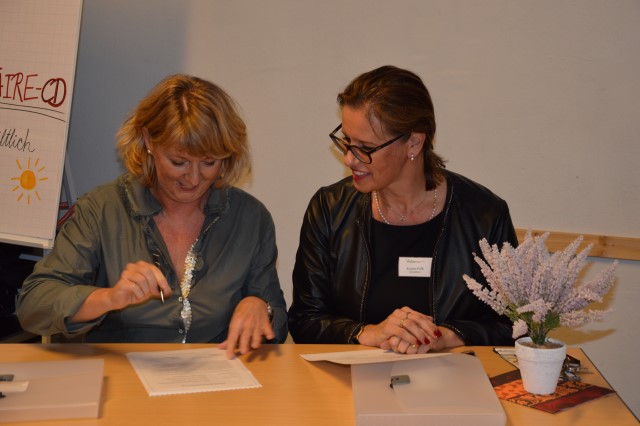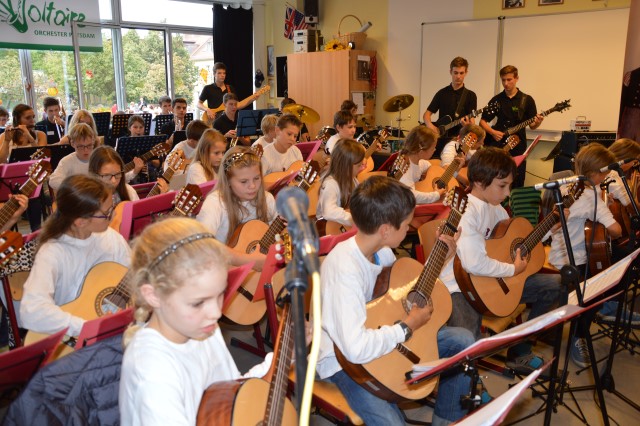 Einer der Höhepunkte des Nachmittages war die Unterzeichnung des Kooperationsvertrages zwischen der Rosa-Luxemburg-Grundschule und der Voltaireschule. Begleitet wurde diese durch die Orchester beider Schulen.