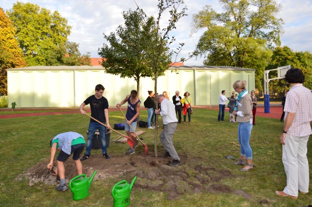 Die Pflanzung des „Voltairebaumes“, welcher von den Schülerinnen und Schüler sowie den Eltern des ehemaligen 10. Jahrgangs gespendet wurde, war nicht nur ein weiterer Höhepunkt des Abends, sondern auch die Grundsteinlegung für die Voltairegärten.