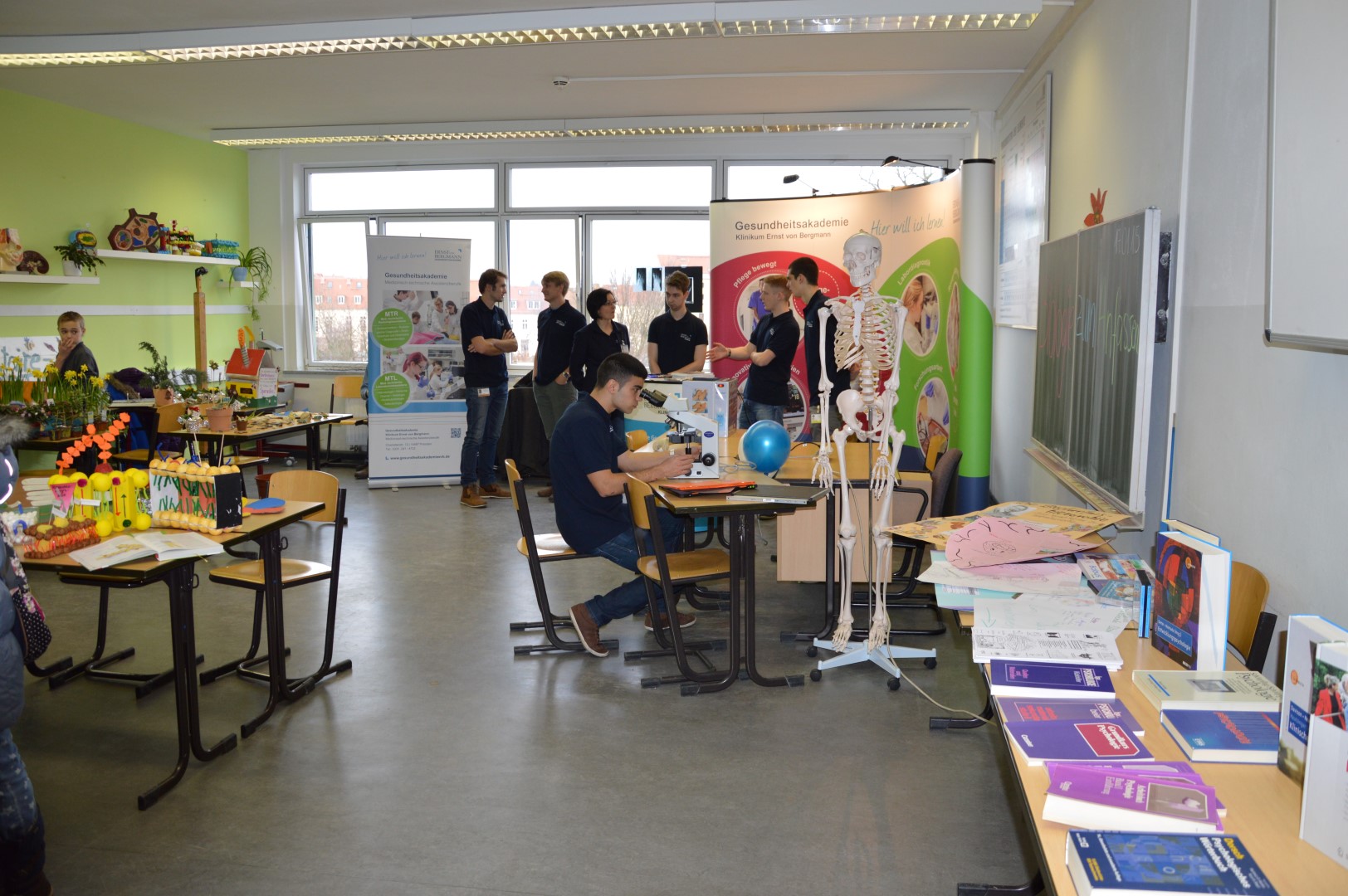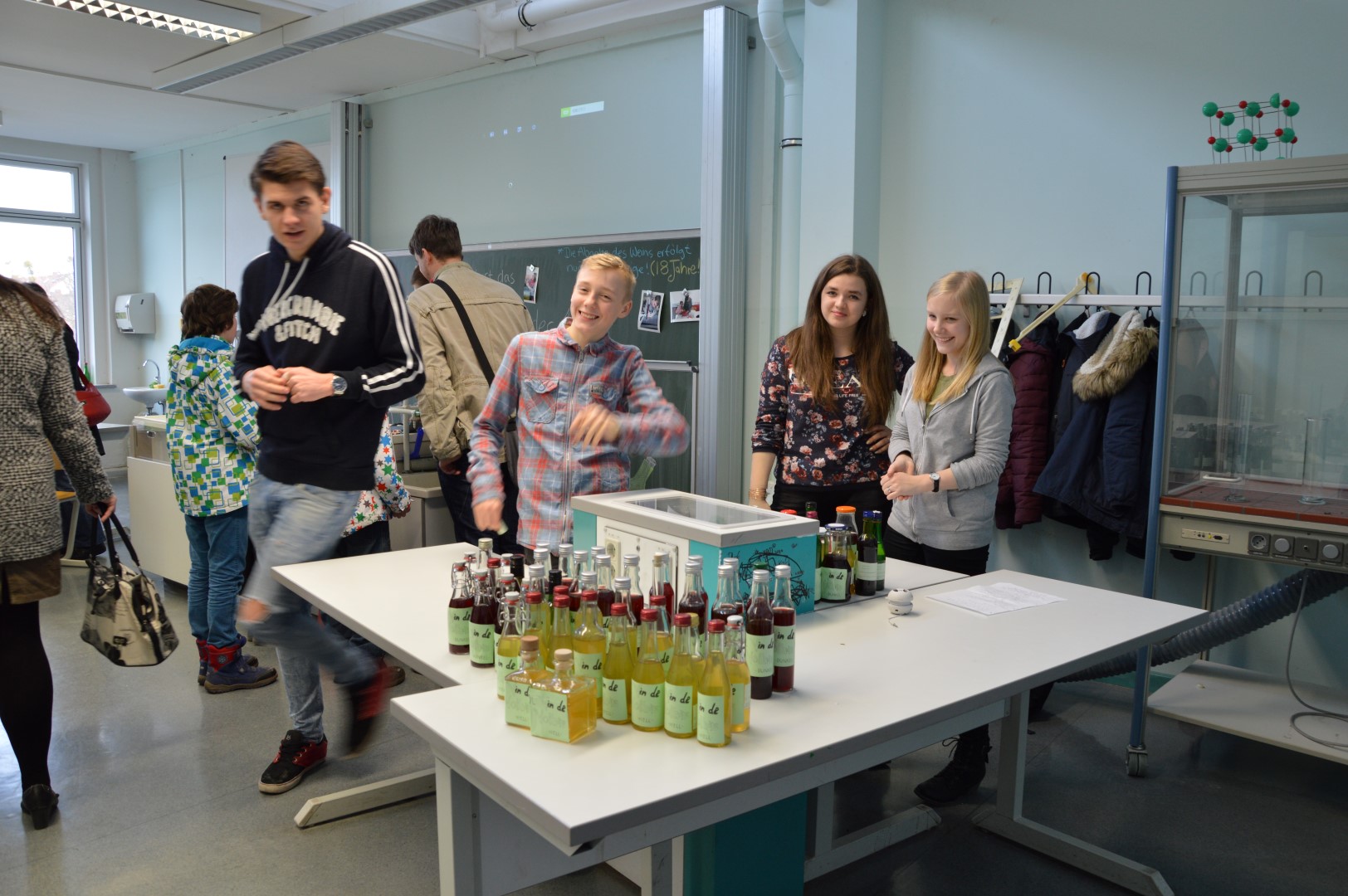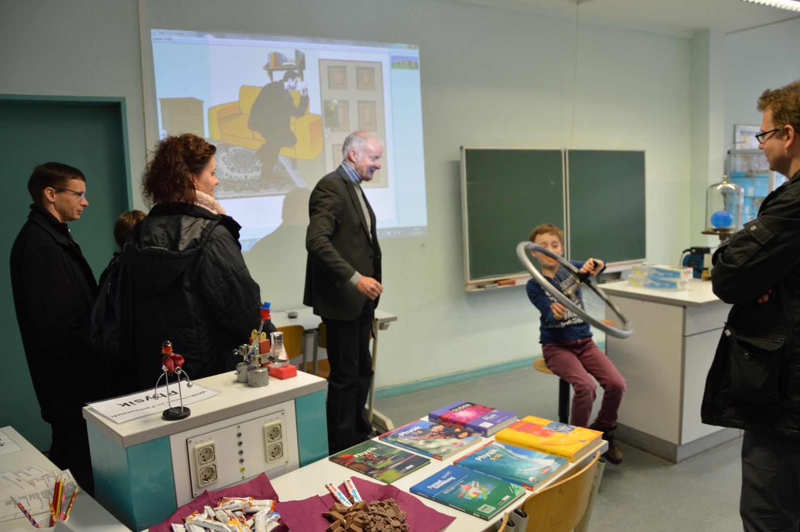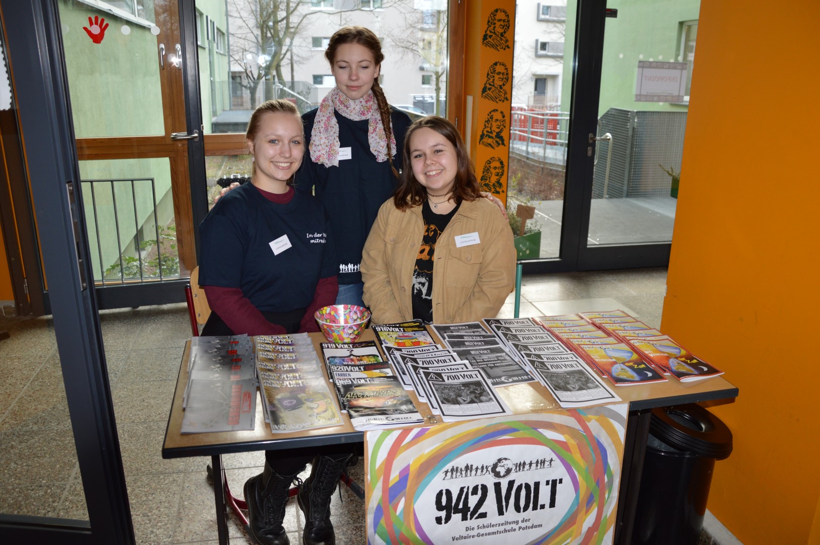 Nein, der Tag bei Voltaire war keine schlechte Feier, im Gegenteil: Er hatte Vieles von einer guten. Wer nicht dabei war, hat auch dieses Jahr viel verpasst. Soll ich Sie, verehrter Leser, neidisch machen? Ich habe mir von Physiklehrern einen Blitz aus der Nase ziehen lassen, mitbekommen, dass „Wer wird Millionär“ mit politischen Fragen viel spannender sein kann, ich habe Rotkohlsaftbubbleteakugeln bestaunt und gelernt, wofür man sie verwenden kann, ich habe erfahren, wie man medizinisch-technischer Radiologie-Assistent am Ernst von Bergmann-Klinikum (einem Kooperationspartner der Voltaireschule) wird und was man im Naturkundemuseum alles lernen kann (ein weiterer Kooperationspartner), ich habe mir Videos aus und über Israel und Finnland angesehen, welche unsere Schülerinnen und Schüler dort bei ihrem Austauschaufenthalt hergestellt haben, ich habe Deutschland gepuzzelt und war begeistert zu erfahren, dass im Unterricht mit unseren schuleigenen iPads bereits Zeichentrickfilme auf Englisch produziert werden. Und dass es zukünftig möglich sein wird, das französische Abitur an unserer Schule abzulegen – wo gibt’s denn so was sonst noch?! (Nur noch einmal in ganz Brandenburg!!)