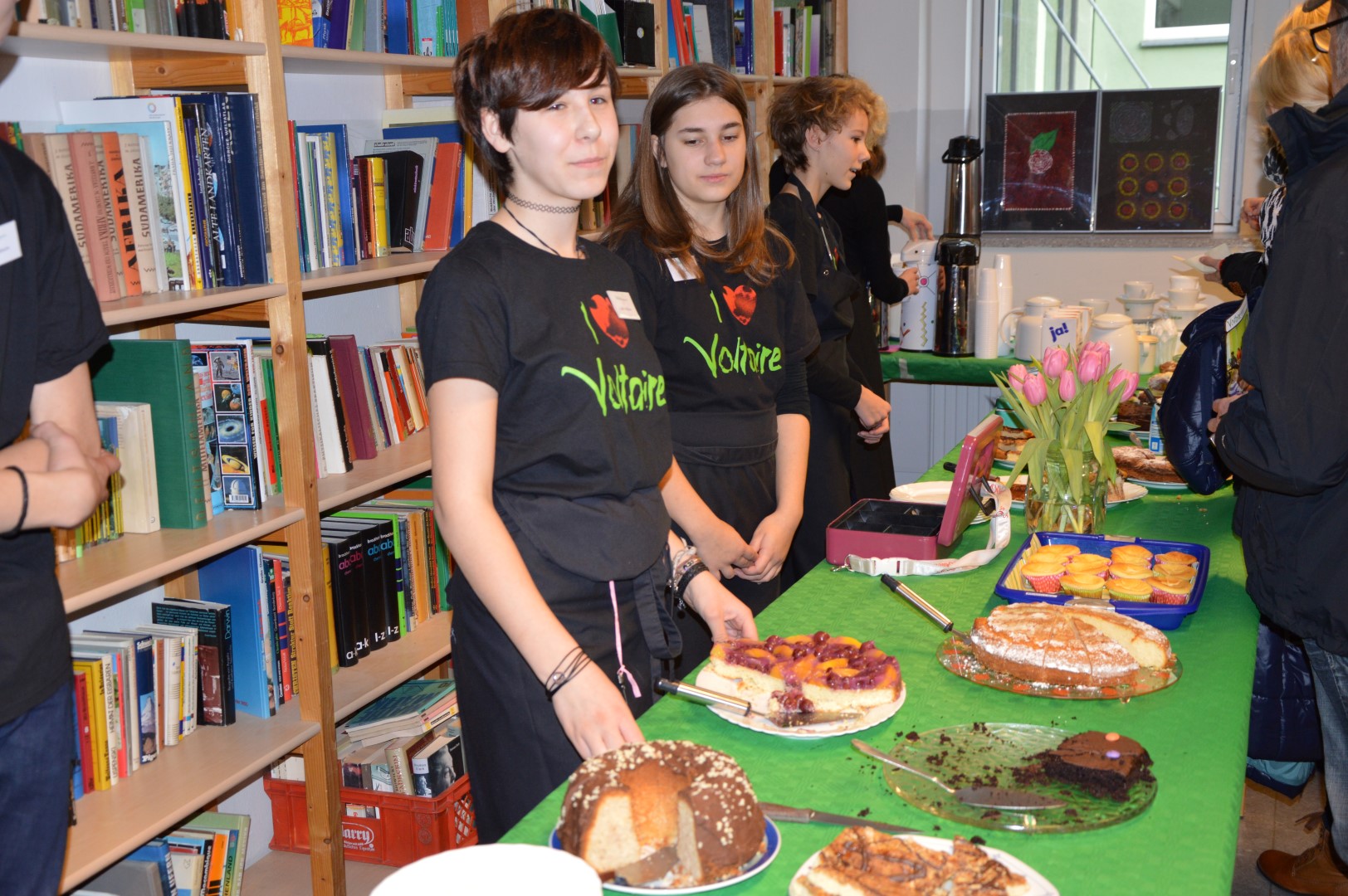 Gestern war wieder einmal Tag der offenen Tür bei Voltaire. Ich war da, ich habe von Anfang bis zum Ende alles mitgemacht. Ich bin sogar mit zwei Katern aufgewacht. Die heißen Mumpitz und Murmel. Sie schnurren und maunzen, aber Kopfschmerzen bringe ich nicht mit ihnen in Verbindung.