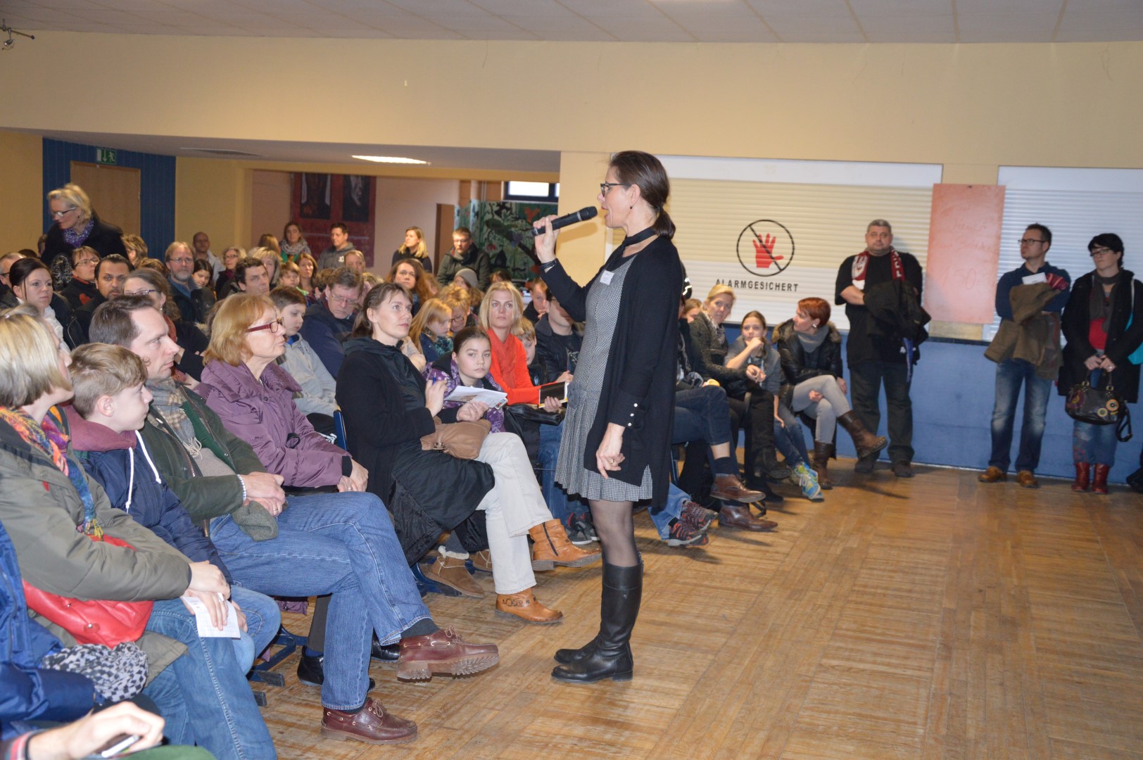 Bei all den Neuigkeiten und den Besonderheiten unserer Schule ist es nur allzu verständlich, dass der Andrang der interessierten Schülerinnen und Schüler und deren Eltern unvermindert groß war. Für die Informationsveranstaltungen der Schulleitung reichten die Plätze deshalb kaum aus – selbst in der Mensa/Aula nicht ... Wir versuchen weiterhin, dieses Problem zu lösen!
