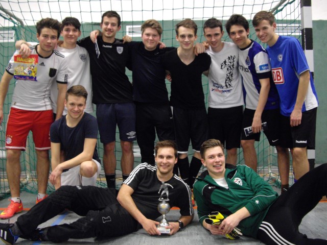 Den umjubelten Turniersieg holten sich aber mehr als verdient unsere Dreizehner um John Pawletta in einem internen Jahrgangsfinale mit 3:1 gegen das Petermann-Team. Dieser Turniersieg stellte nicht nur deshalb etwas Besonderes dar, weil diese Jungen endlich im fünften Anlauf den großen Wurf landeten, sondern weil mit Marcel Huth, Adrian Burgold, John Pawletta, Julian Drachenberg und Paul Zech große Sportler demnächst mit dem Abitur unsere Schule verlassen, die wir auch aus sportlichen Gründen sehr vermissen werden.