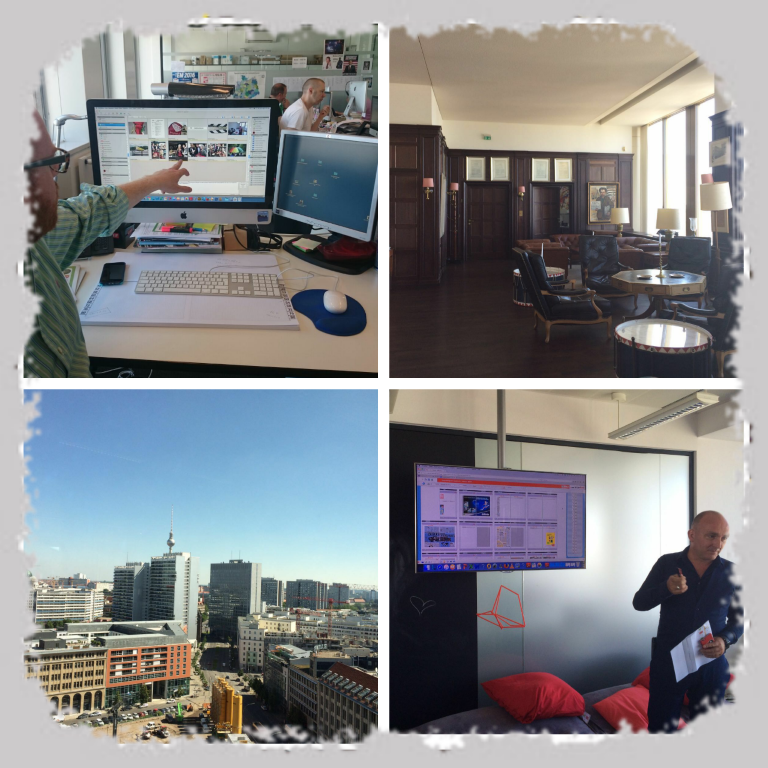 Nachdem wir uns von dem unglaublichen Ausblick aus dem 15. Stock über ganz Berlin abwenden mussten, zeigte man uns die Redaktion der Zeitung. Da nur 60 Journalisten für die BILD am Sonntag arbeiten, sind die Büroräume vergleichsweise klein. Es gibt mehrere Konferenzräume und einen großen „Newsraum“, in dem sich Tischinseln zu den verschiedenen Bereichen der Zeitung befinden. Dort bekamen wir unter anderem die Möglichkeit, uns mit dem Mitarbeiter Alexander Blum zu unterhalten. Dieser erklärte uns, dass sie täglich über 15000 Fotos durchsuchen würden, nur um den passenden Eyecatcher zu finden.
