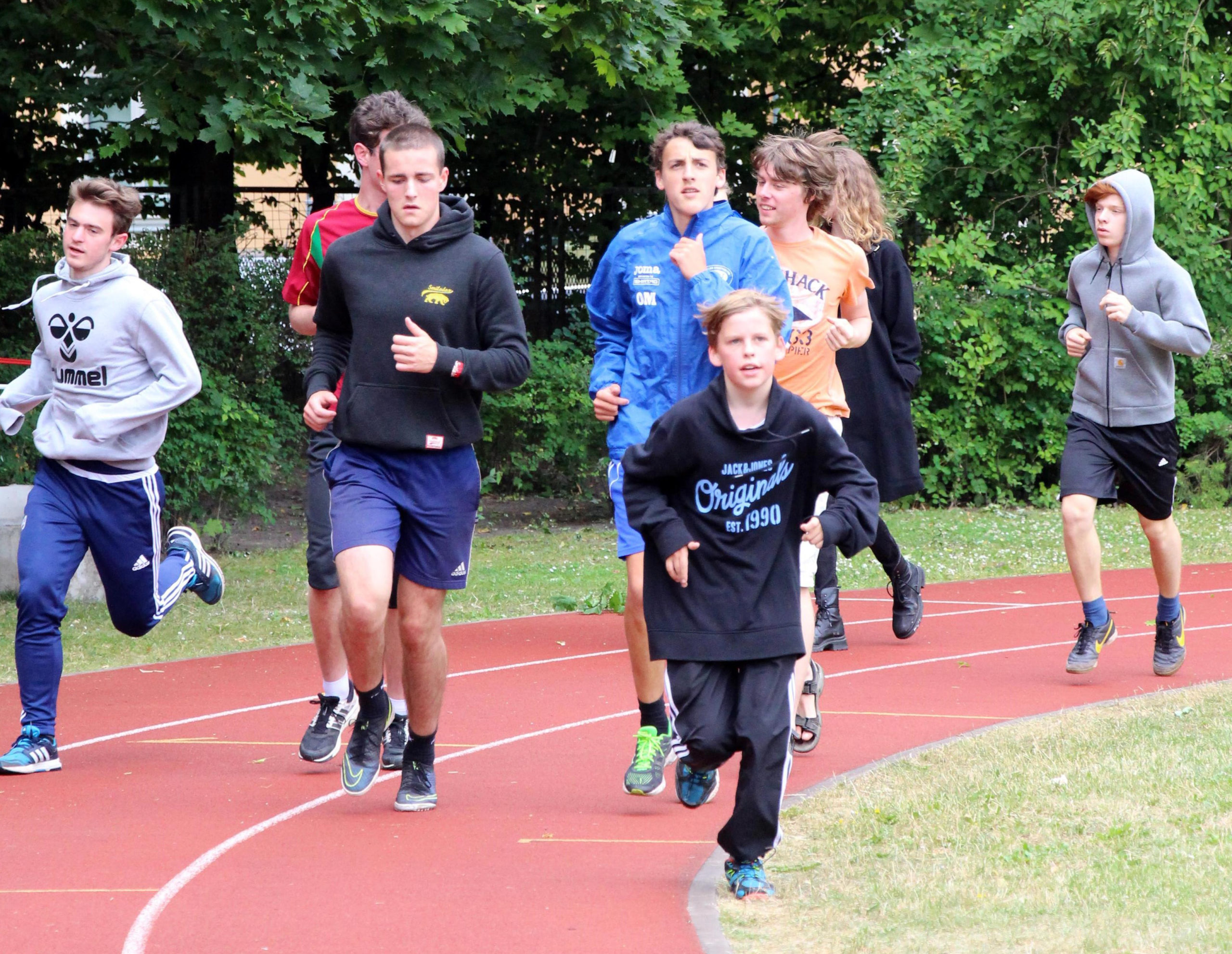 Am Lauftag ließen sich unsere „Laufwunder“ dann selbst vom ein oder anderen Regenschauer nicht die Laufschuhe wegspülen. Denn bei nicht ganz so hohen Temperaturen und leichtem Regen läuft es sich ja bekanntlich am besten. Nachdem die Jahrgänge 5 bis 7 im ersten Block unter großem Gedränge und mit sichtlichem Spaß die Bahn anwärmten, übernahmen die Klassen 8 und 9 den Staffelstab des großen Herzens. Nach der Mittagspause eroberten sich die Großen der GOST die Sportanlagen bei Voltaire. Und wem die Runde doch zu lang war, der wanderte trotz Regenschirm symbolisch ein paar Kilometer. Natürlich schlummert bei den Großen noch Bewegungspotential für nächstes Jahr, aber insgesamt war dieser Sporttag mit fleißiger Wade und einem großen Spenderherzen ein ganz besonderer Höhepunkt am Ende eines sportlich sehr erfolgreichen Schuljahres.