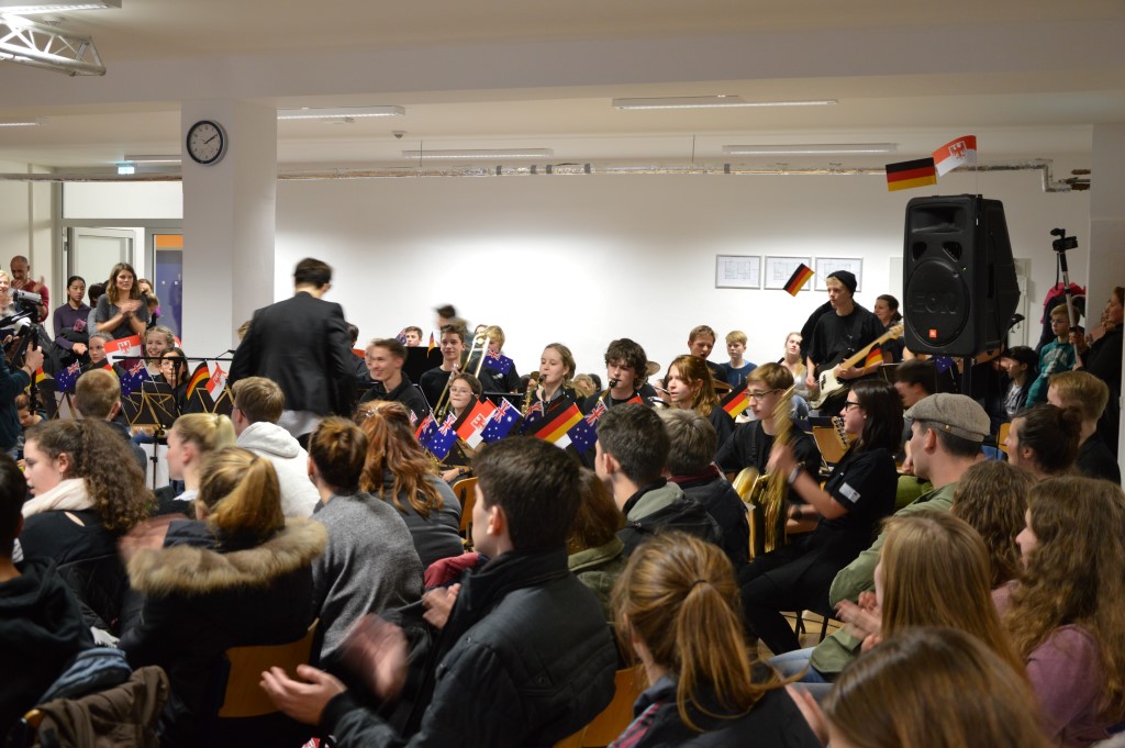 Unsere Schule stellte die letzte Station der australischen Schüler während ihrer Europa-Tour dar und sie waren Teil des “Big-Band-Battle” zwischen dem Gymnasium aus Herrmannswerder, ihnen und uns. Zuletzt jedoch spielte jeder nur um des Spaßes Willen und nicht um zu gewinnen.