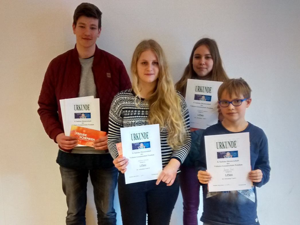 Heute fand er wieder statt, der Sudoku-Wettbewerb. Nun schon zum achten Mal in Folge. Auch die HelferInnen als Kampfrichter haben einen guten Job gemacht, hier geht ein besonderer Dank an die vier Teamchefs. Somit standen zur Mittagspause folgende Sieger fest: