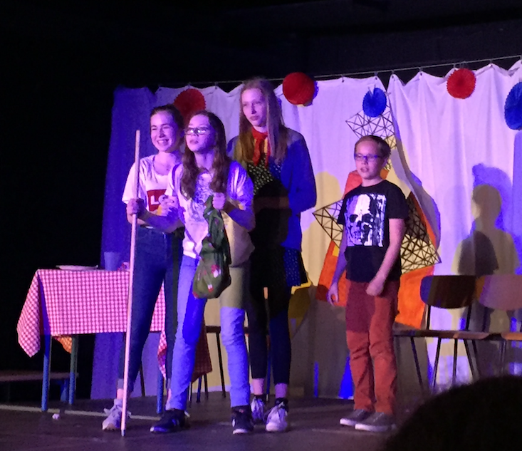 Das Publikum ließ sich insbesondere von den musischen Beiträgen anstecken und klatschte begeistert zu einem Musikvideo des Grundkurses 11 und den Chansons des Leistungskurses 13. Aber auch nachdenkliche Momente durchzogen den Abend: eine Textlesung zu den Terroranschlägen in Paris ließ den Saal einige Minuten ruhig werden und verlieh der darauffolgenden Szene mit dem Appell zu Toleranz und Hilfsbereitschaft im Alltag ein besonderes Gewicht.