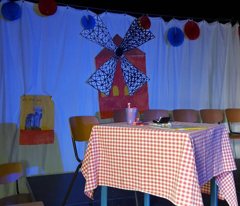 Angefangen bei den débutants der Abibac-Klasse 5L, die ihre ersten Fremdsprachenkenntnisse in ein szenisches Spiel verwandelten, über eigens erstellte Werbetrailer für französische Comics der 8L bis hin zu selbst umkomponierten und samt Klassenband interpretierten Songs der 8B bot das Bühnenprogramm eine Vielzahl unterschiedlicher Darbietungen.