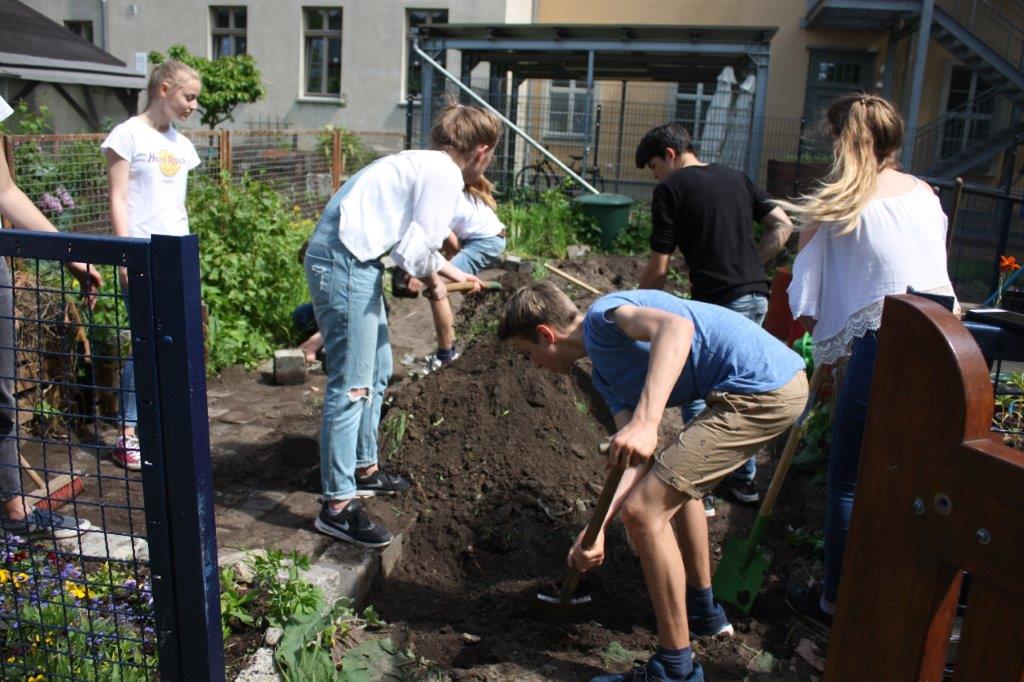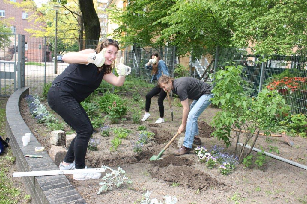 Die Schüler waren voll dabei, haben richtig zugepackt, und wir haben ganz viel in den Voltairegärten geschafft!