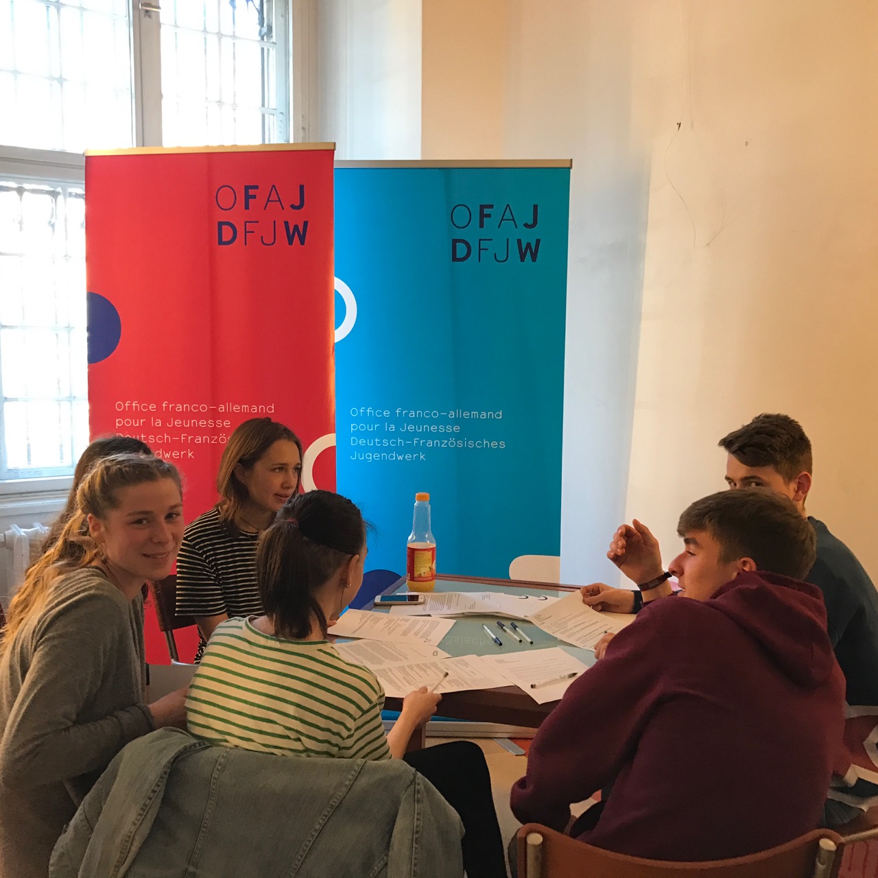 „Echt cool, was die deutsch-französische Jugendwerk für junge Leute alles so anbietet“, kommentiert eine Teilnehmerin, während sie genüsslich in ihr Brötchen beißt – und damit meinte sie nicht nur das tolle Buffet, das uns das DFJW in der Mittagspause kredenzte.
