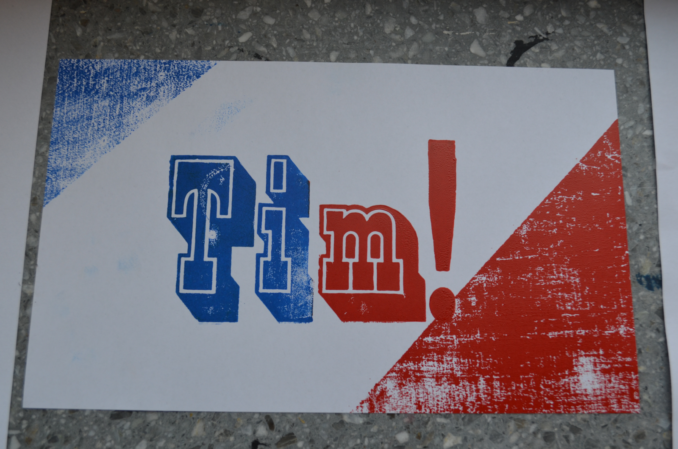 Eifrig gearbeitet wird auch in der Plakatdruck-Werkstatt bei Kai Herse, die im benachbarten Kunstraum stattfindet. Der Künstler vermittelt hier die alte Technik des Holzdrucks, mit der die Siebtklässer von heute begeistert eigene Nicknames oder die ihrer YouTube-Vorbilder in ganz analoger Form zu Papier bringen. Im weiteren Verlauf des Vormittags beginnen sich die Schülerinnen und Schüler untereinander in den Werkstätten gegenseitig zu besuchen, da Pausen individuell festgelegt werden. Durch die Flure stürmen jetzt die Kinder, die sehr neugierig sind, was ihre Klassenkameraden in den anderen Werkstätten erschaffen.