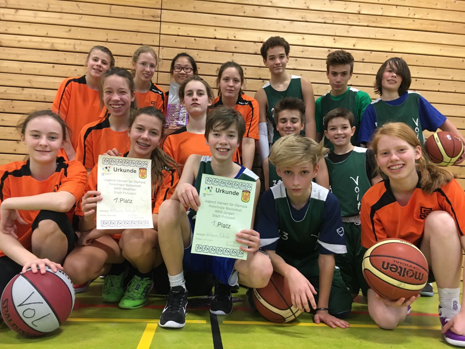 Die kleinen Basketballer der WK III hielten sich dafür bei ihrem Potsdamer Kreisfinale am 20.12. schadlos und stürmten souverän zum angestrebten vorweihnachtlichen Meistertitel. Angeführt von unserem überragenden Topscorer Gian Schröder und dem mit der Urgewalt eines Hurricanes verteidigenden Marc Tönse waren unsere Edeltechniker Basti Dill, Luca Brandt und Levi Bohn von den gegnerischen Teams nicht zu stellen. So gelangen auch die schwierigen Würfe von Ramires Lange und Levi Bohn und beseitigten alle Restzweifel, dass hier der verdiente Meister 2017 spielte.