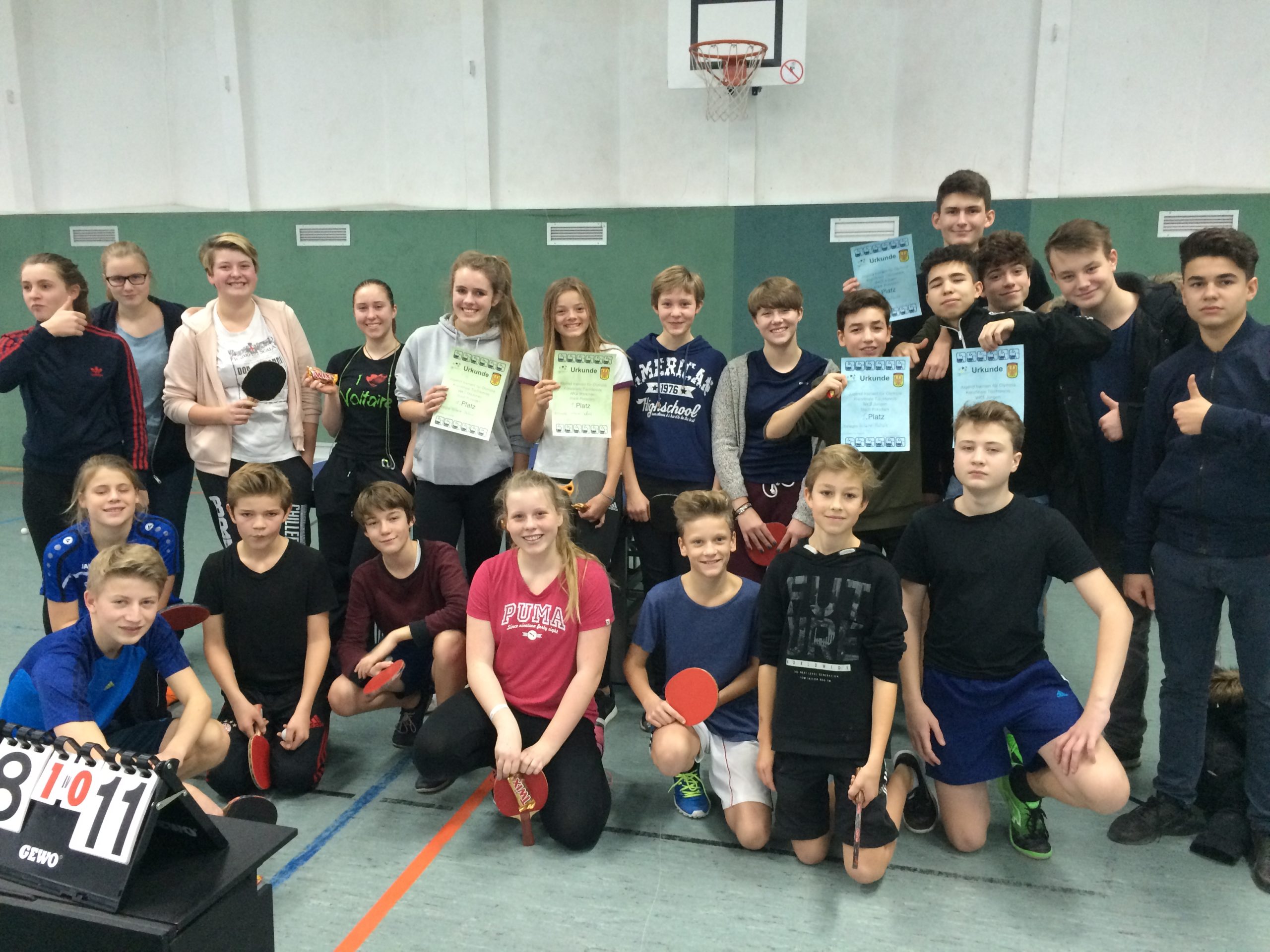 Während unsere KorbjägerInnen der Klassen 9/10 am Mittwoch, dem 29.11. um die begehrten Titel kämpften, warteten die Tische des TTV Einheit Potsdam am darauffolgenden Tag zum sechsten Mal auf die jeweils drei Klassenbesten der Jahrgänge 5–10 bei unserem Tischtennis-Schulcup. Hier galt es nicht nur das beste Mädchen und den Tischtenniskönig unserer Schule zu ermitteln, sondern es ging auch darum einen der begehrten Plätze in unserern Schulmannschaften zu erschmettern, die unsere Farben bei unserem „Heimspiel“ dem Kreisfinale im Tischtennis am 15.12. vertreten sollten.