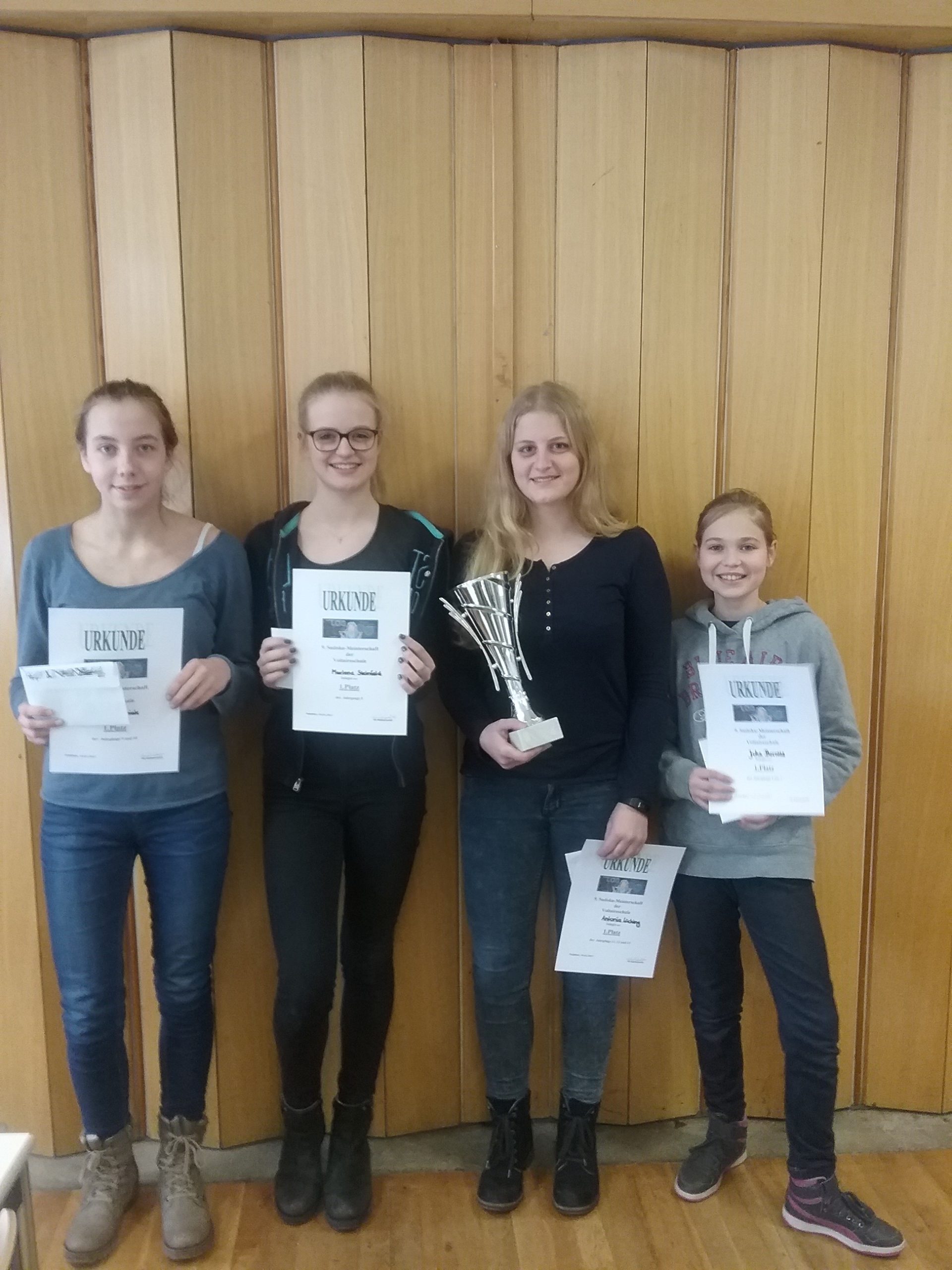 Im Kampf um den Pokal des Schulsiegers setzte sich Antonia durch und gewann den Wanderpokal, der nun in der Vitrine für ein Jahr zu betrachten ist, selbstverständlich verziert mit ihrem Namen.
