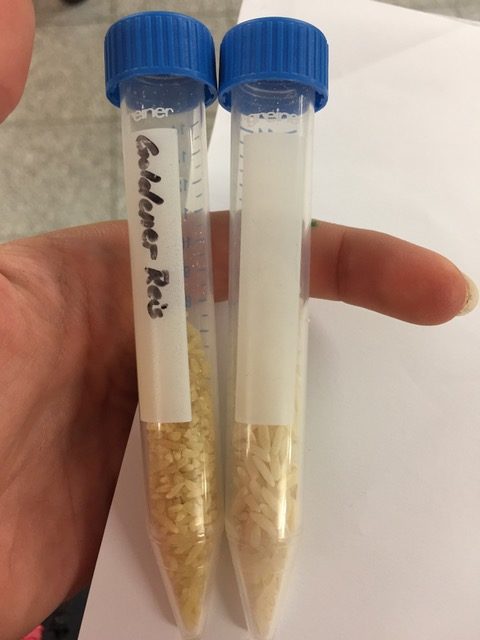 Wir haben als Erstes in einem kleinen Seminarraum unser Wissen über Genetik aufgefrischt und sind dann in den Keller gegangen, wo wir Klimakammern, einen Roboter, der Pflanzenteile zerkleinert, und Regale voll mit kleinen Pflanzen in Gelee sehen konnten. Außerdem haben wir über genveränderte Pflanzen gesprochen und uns Beispiele, wie den goldenen Reis, angeguckt, dem das Gen für Vitamin A-Produktion hinzugefügt wurde.