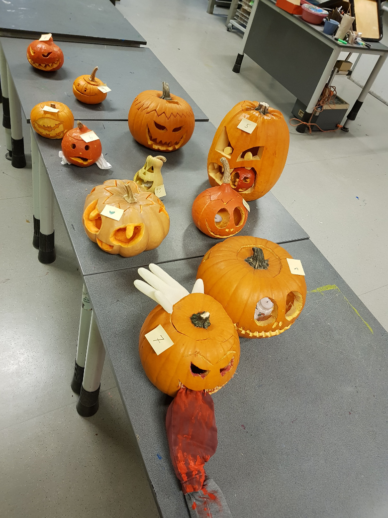 Also erschienen wir im Kostüm und brachten jeder einen Kürbis mit. Zuerst machten wir Fotos, damit wir uns immer daran zurück erinnern können. Bei Kürbissuppe, Würstchen, Wackelpudding und Zimtschnecken unterhielten wir uns, bis es richtig dunkel wurde und der Gruselspaß losgehen konnte. Wir spielten Verstecken und Fangen im Schulhaus, beschworen Geister und kürten den besten Kürbis.
