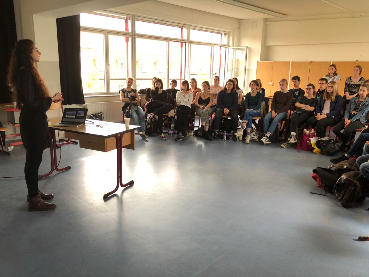 Am 24.04.2018 durften wir in der Voltaireschule zwei Geflüchtete kennen lernen, die bereit waren, uns ihre persönliche Geschichte zu erzählen. Das Projekt „Life Back Home“ organisiert Vorträge, gehalten von jungen Geflüchteten für junge, interessierte Menschen an Schulen. Erfreulicherweise konnten wir das Projektteam gewinnen, uns zu besuchen.