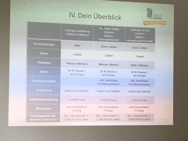 Ich habe mich beim Zoll angemeldet, da ein Mitschüler von mir in der Klasse gefragt hatte, ob sich noch irgendeiner von uns anmelden möchte. Ich habe mir daraufhin durchgelesen, was die Leute beim Zoll so anbieten und ich dachte mir, dass das interessant werden könnte. Und es hat mich überrascht , wie viele verschiedene Bereiche man als Beruf wählen kann, z.B.: an Flughäfen Kontrollen durchführen oder Schwarzarbeiter kontrollieren. Man kann auch Trainer werden für Hunde oder für das Schießtraining und noch so viel mehr. Mich interessiert am meisten der Bereich mit den Hunden, also Flughafenkontrolle. Ich würde jedem, der Hunde mag oder sich für die Polizei interessiert, raten, das einmal auszuprobieren. Ich könnte mir sogar vorstellen, den Beruf zu erlernen, wenn ich älter bin.