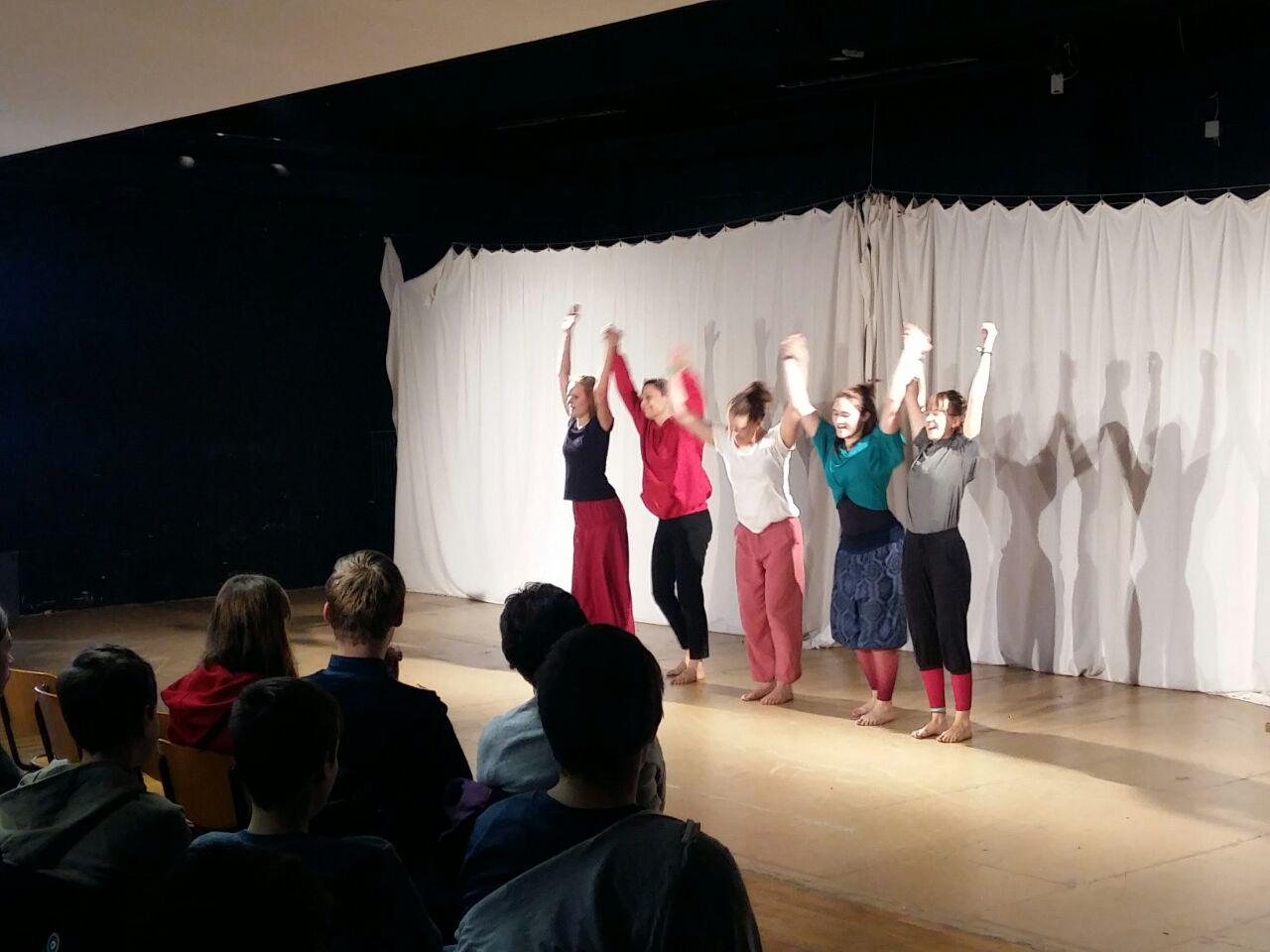 Weitere künstlerische Höhepunkte lieferten Selma R. (Klasse 5L) mit einem Stück für Violine von Otokar Ševčík, Gregor L. (ebenfalls 5L) mit „Eine kleine Nachtmusik“ von Mozart auf der Gitarre; und Cora, Luca, Pauline, Emma und Antonia aus Klasse 10, 11 und 12 zeigten eine Tanzperformance („Dota“).