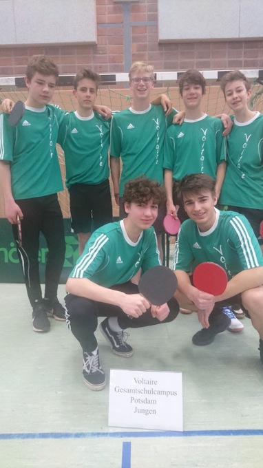 Ohne Vereinsspieler aber voller Optimismus reisten die Voltaire-Jungen der WK II am 26.02. 2019 nach Cottbus zum Landesfinale im Tischtennis.