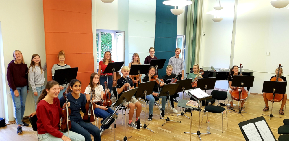 Am 01.09.2019 ging für uns - 15 Schülerinnen und Schüler aus den Klassen 8 bis 13 - die Reise zur Musikakademie Rheinsberg los. Vier Tage lang probten wir als Streichensemble und Chor von morgens bis abends an verschiedenen neuen Stücken. Dabei entstand ein Repertoire, mit dem beide Ensembles zukünftig bei verschiedenen Events auftreten werden, unter anderem beim Voltairetag 2019, beim Schüleraustausch mit unserer israelischen Partnerschule Gvanim High und beim diesjährigen Weihnachtskonzert am 19.12.2019.