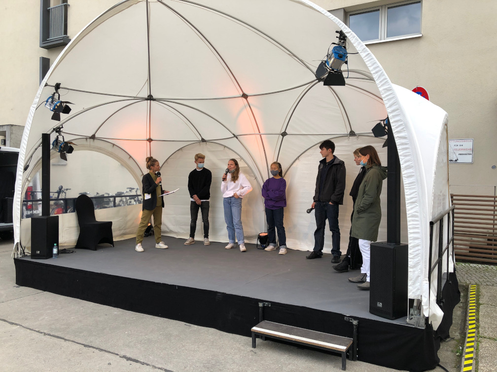 Mitgewirkt haben drei Schülerinnen aus dem 13. Jahrgang und fünf SchülerInnen aus dem 12. Jahrgang. Die Bilder sind am Bauzaun der Garnisonkirche ausgestellt und „freuen“ sich auf interessierte Besucherinnen und Besucher.